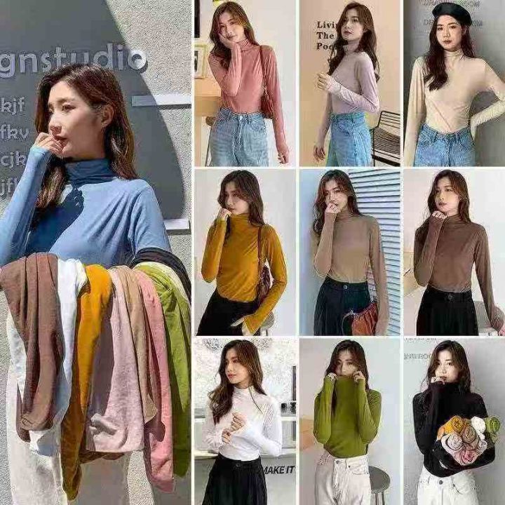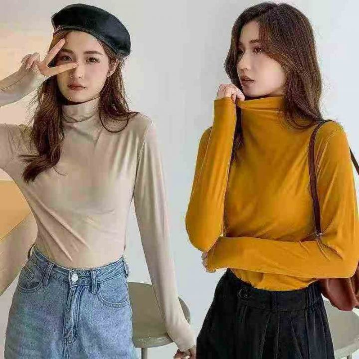 全清价6.9女士百搭半高领显瘦纯色打底衫,独立包装,...