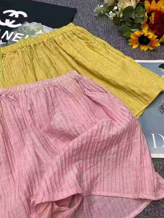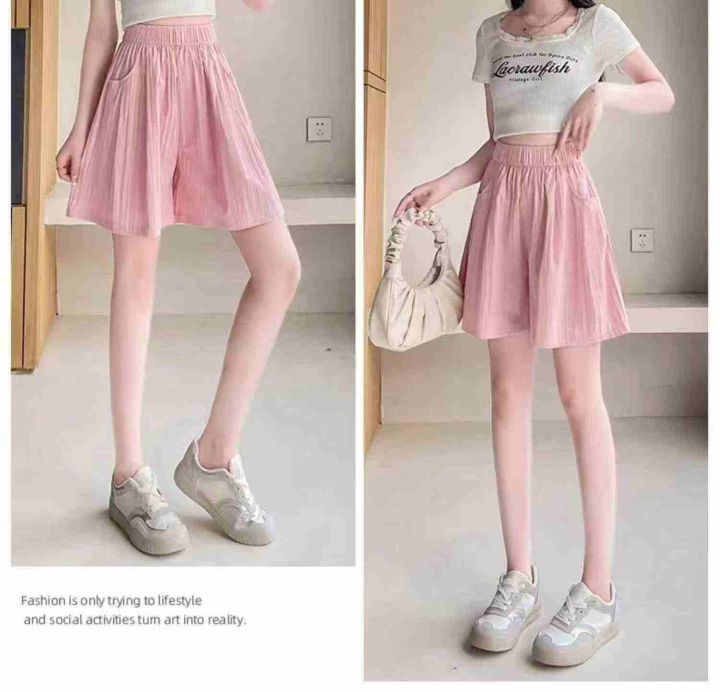 夏季新款直筒高腰清凉五分肌理感冰丝褶皱宽松休闲短裤,独立包装,码数S--XL码, 800件左右,全清3.8元超低价秒杀!分货加一!