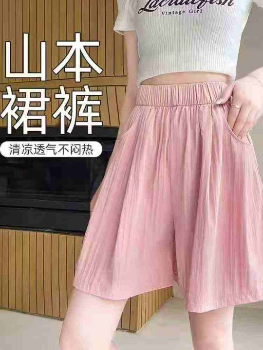 夏季新款直筒高腰清凉五分肌理感冰丝褶皱宽松休闲短裤...