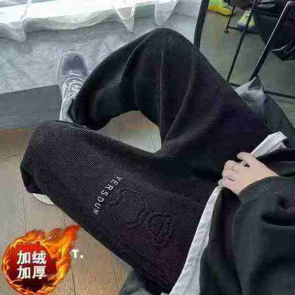 华夫格卫裤男冬季加绒款束脚运动裤ins潮牌宽松休闲长裤子,独立包装,整款两色,S-3XL,500件左右,8.8清,分货+1