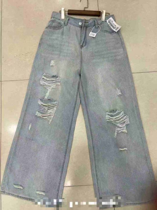10.5元全清,破洞牛仔裤男2025新款高级感百搭燕麦色直筒裤美式高街宽松阔腿裤,单款单色,S-XL码,68件左右,独立包装