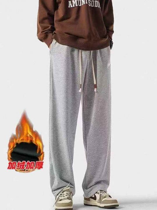 刺绣直简裤男冬季加绒韩式潮款宽松百搭休闲运动长裤,前后设置有口袋,整款...