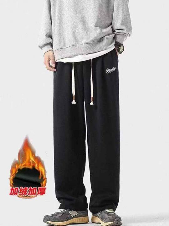 刺绣直简裤男冬季加绒韩式潮款宽松百搭休闲运动长裤,...