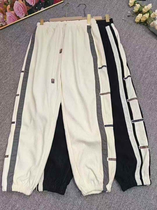 侧边条纹灯芯绒男冬季加绒加厚潮牌宽松束脚裤子,整款三色,独立包装M-3XL,800件左右,10.8清,分+1