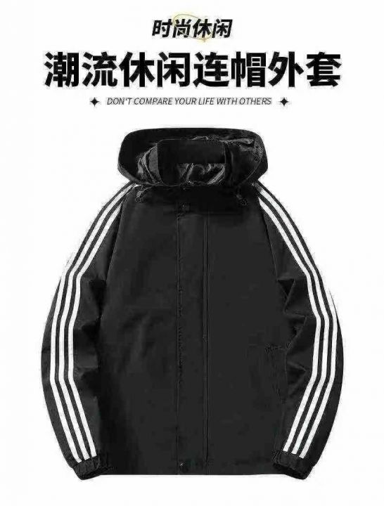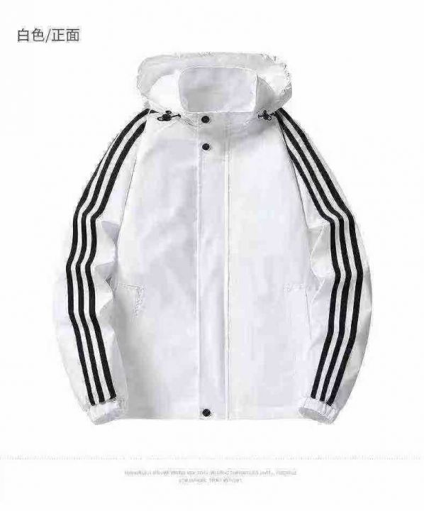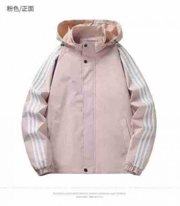 三条杠男女同款休闲运动冲锋衣…颜色:黑色、白色和粉...