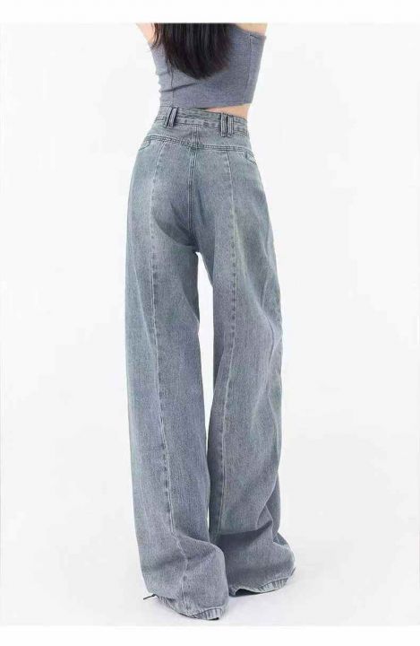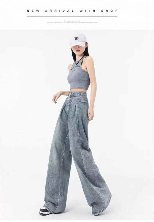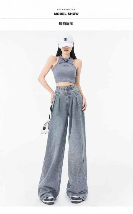 夏季薄款复古高街阔腿牛仔裤女ins垂感高腰,单款单色...
