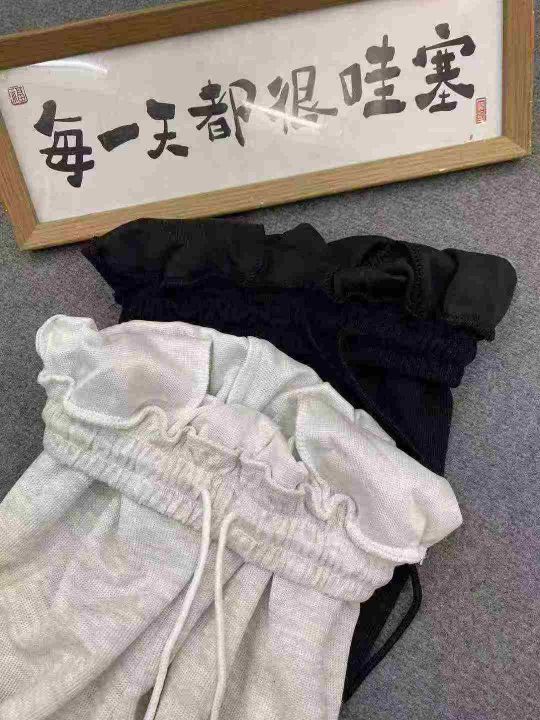 华夫格休闲裤129件7.5,抽绳松紧腰,有口袋,裤脚可束...