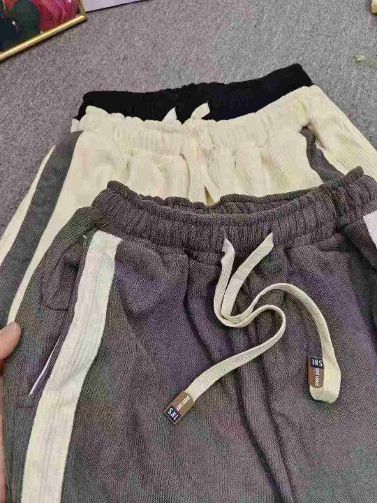 侧边条纹灯芯绒男冬季加绒加厚潮牌宽松束脚裤子,整款三色,独立包装M-3XL,800件左右,10.8清,分+1