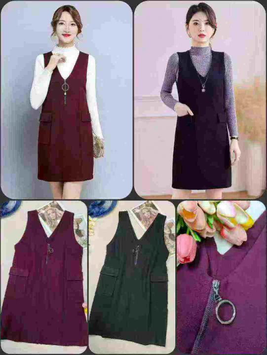 590条单件春装新款宽松显瘦无袖连衣裙女时尚气质v领毛呢背心裙中长款 独立包装 M一2XL 9.9清 分货加一