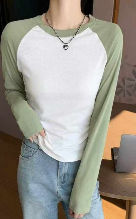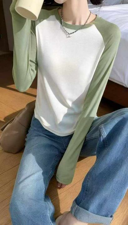 春季新款圆领撞色插肩韩版基础百搭显瘦长袖上衣,工厂...