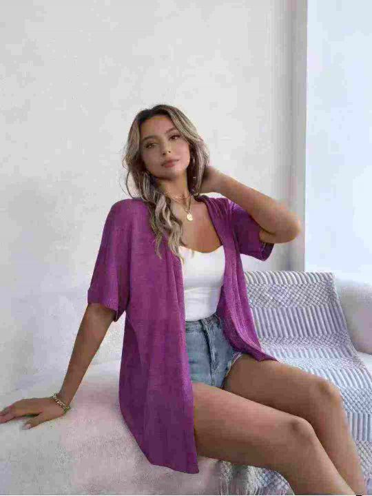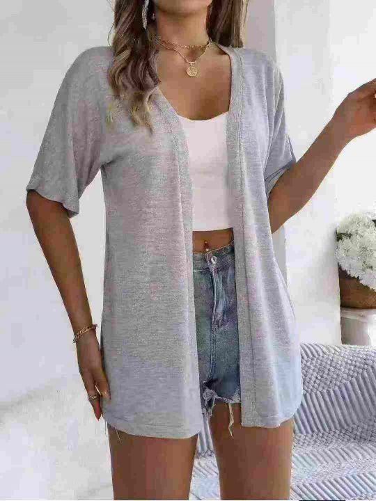 400件薄款冰丝针织短袖外套女春装大码胖中长款外搭开...