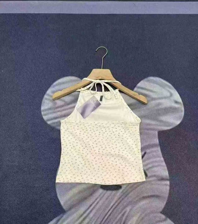 天猫在售款543件高品质清新甜美纯欲风碎花绑带挂脖背心,螺纹纯棉面料高弹力,单款单色,S-L,独立包装带吊牌