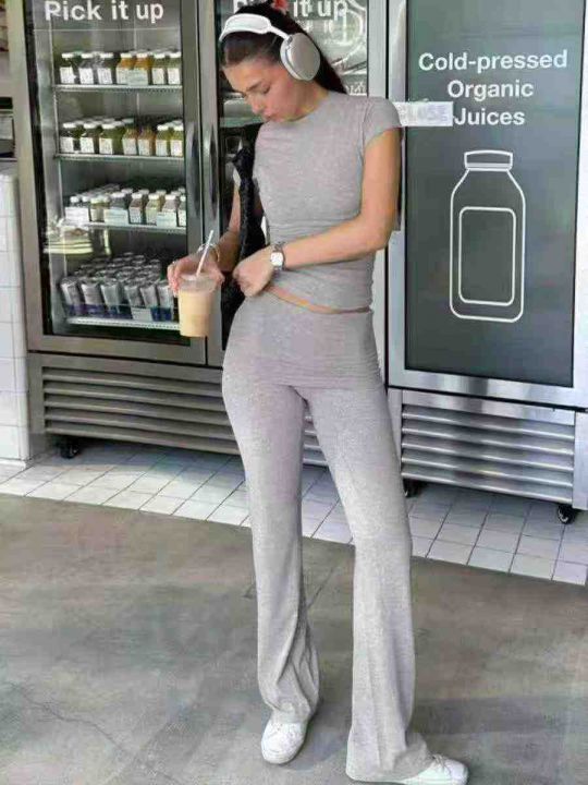 7.8清电商仓回收575套辣妹灰色短袖微喇裤运动休闲套装...