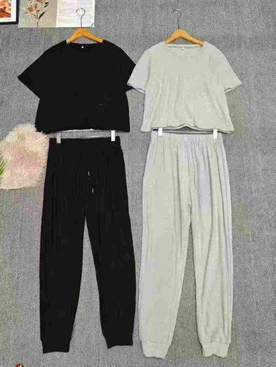 7.8清电商仓回收4621套跨境武动休闲纯色女士短袖长裤...