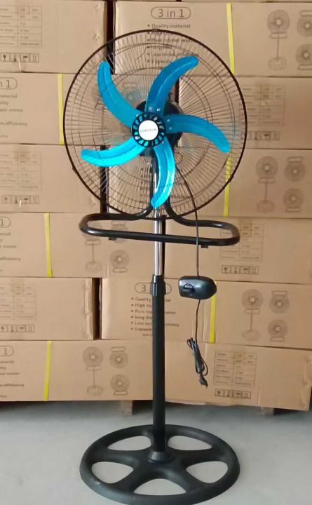 外贸18寸3合1落地金属扇,欧规,两圆插,功率60W,一件4台,单件重量18kgs包装尺寸700*495*210mm