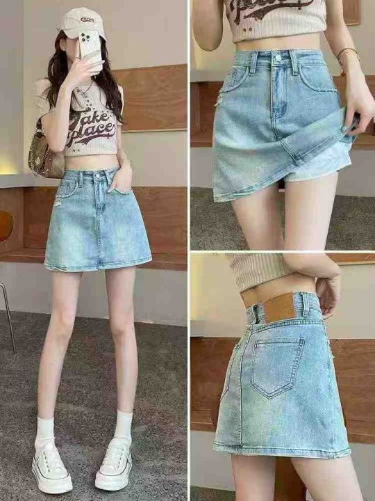 整款高腰牛仔半身裙女春夏季新款辣妹a字防走光包臀短...