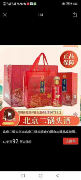 永丰二锅头,特价出,50箱起发70元一箱,一箱起发80元,一箱6瓶,带3个手提袋,42度浓香型白酒,500毫升。 货号:34268