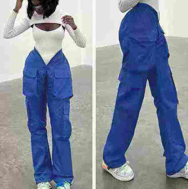 亚马逊外贸纯色时尚潮流工装裤口袋不规则高腰宽松休闲长裤327条全清8.8元,...