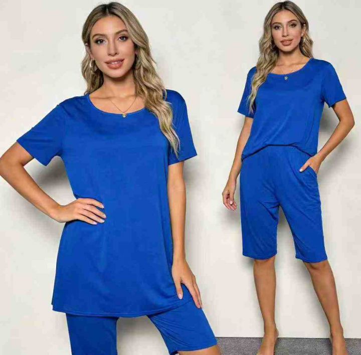 6.8清欧美跨境休闲运动宽松中长款短袖短裤套装 ,整款...