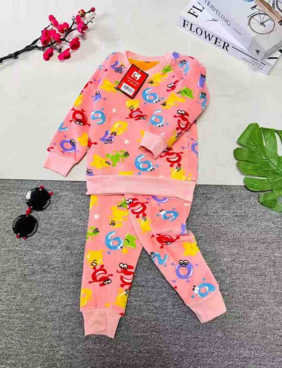 男女童圆领长袖婴儿绒印花打底衫两件套套装,一个款式多花色,数量115套左右,码数都有,品质好,可入实体,拉链式独立包装。