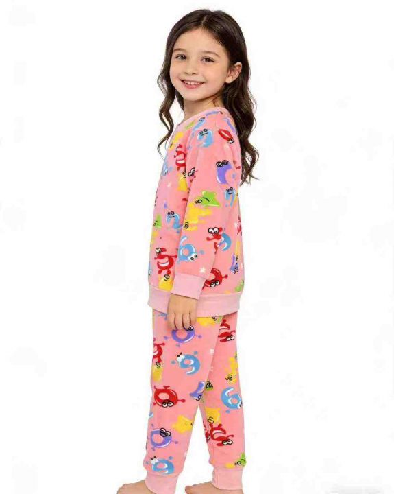 6.8清:男女童圆领长袖婴儿绒印花打底衫两件套套装,...