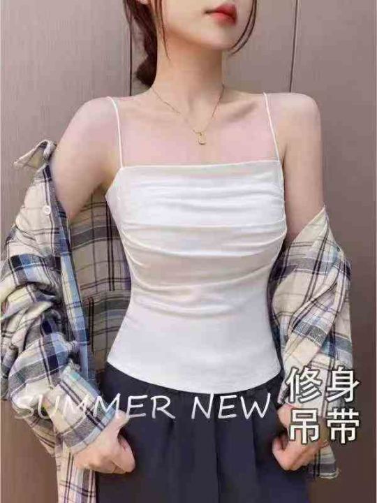 800件纯欲褶皱吊带背心女夏季带胸垫显瘦内搭打底外穿修身美背短款上衣 独立包装 5.8清 分货加一