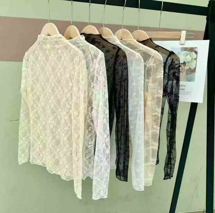1300件半高领木耳边蕾丝打底衫女玫瑰花法式网纱内搭别...