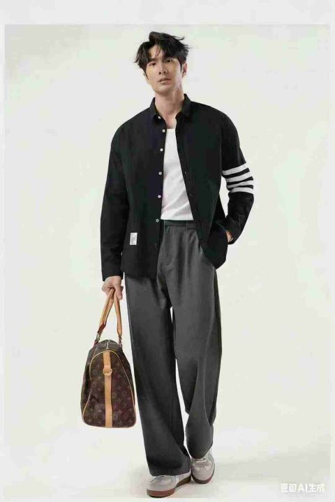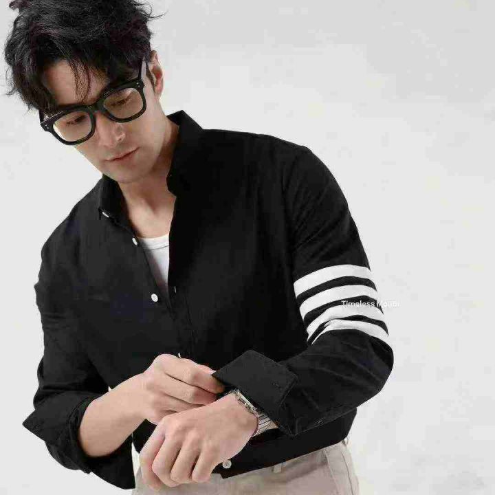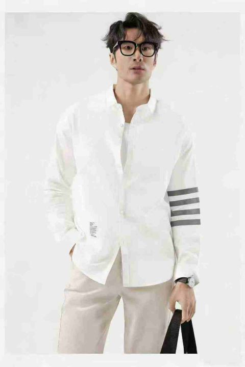 潮牌春秋季新款四条纹宽松衬衫男女情侣衬衫长袖,650件 码数:M-3XL (1点到5点)独立包装,模特图只供参考,分货➕1 (货号305#1)