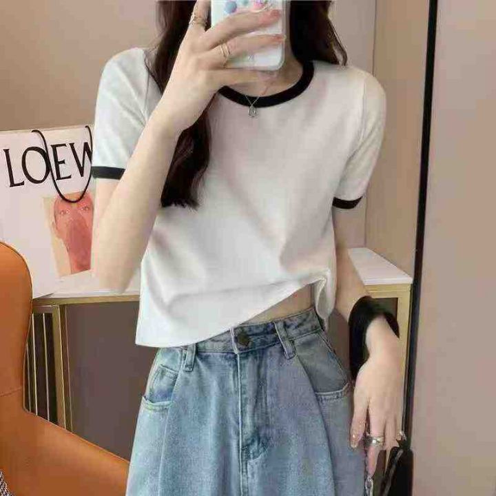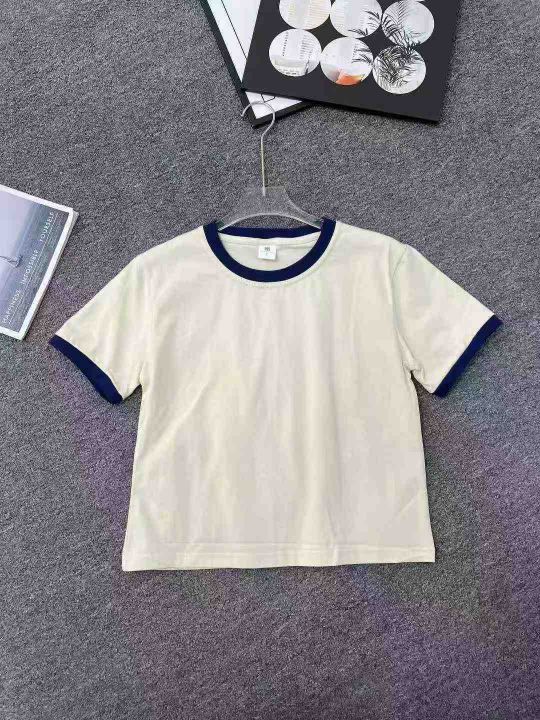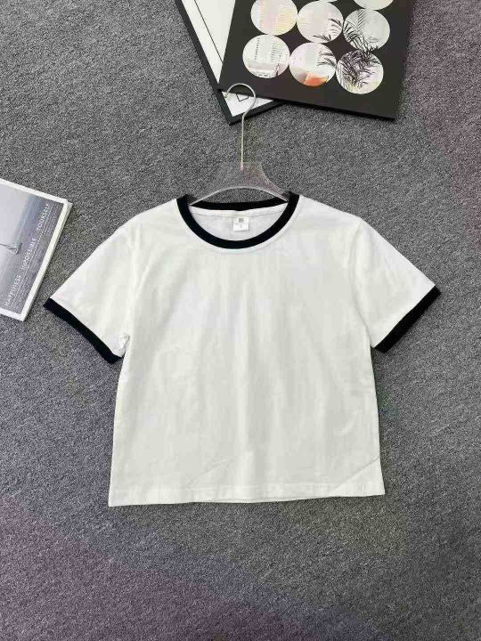☕️纯棉基础款正肩短袖t恤女宽松显瘦撞色拼接上衣潮4...