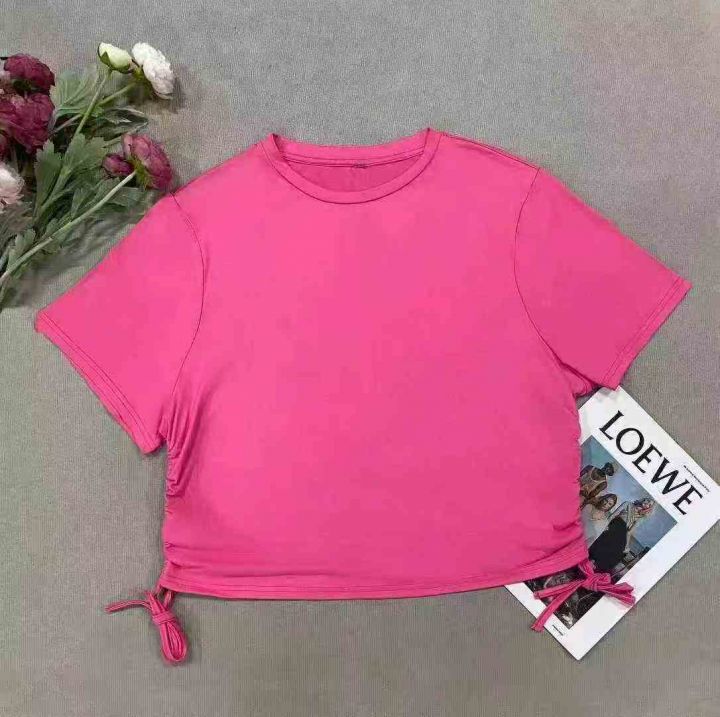 1000多件美式正肩抽绳甜美辣妹设计感小众减龄修身短款体恤,尺码:XL~4XL,面料柔软有弹力,后领包边包条,零次品,全清捡漏价5.8元,分