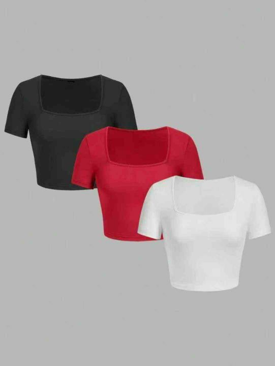 5000多件女款法式方领高腰露脐短T,尺码:XS~XL,面...