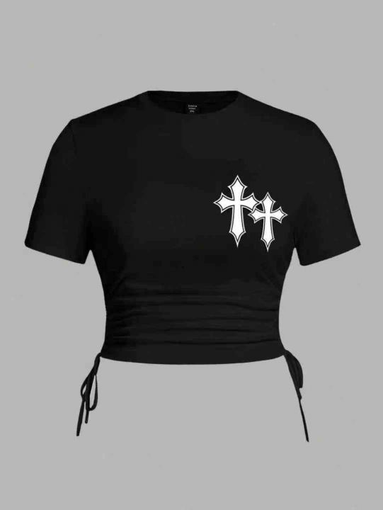 1000多件美式正肩抽绳甜美辣妹设计感小众减龄修身短款体恤,尺码:XL~4XL,面料柔软有弹力,后领包边包条,零次品,全清捡漏价5.8元,分