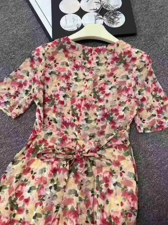 ☕️法式碎花连衣裙夏季新款高级感收腰显瘦v领雪纺连...