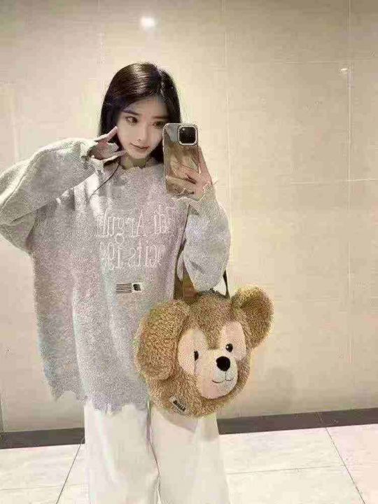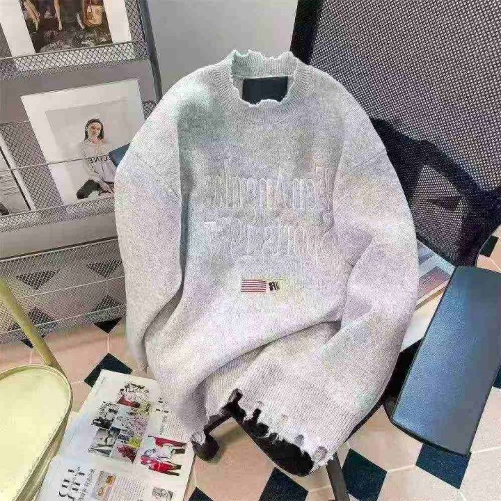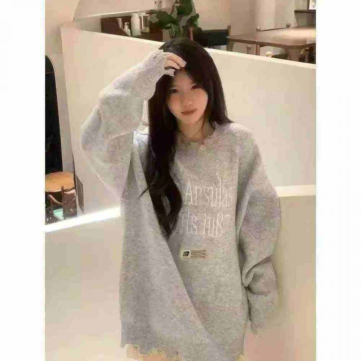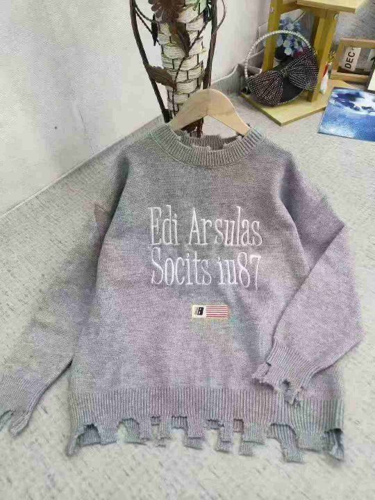 207件美式国潮高街刺绣破洞毛衣女秋冬季hiphop宽松休闲外穿针织衫上衣 独立包装