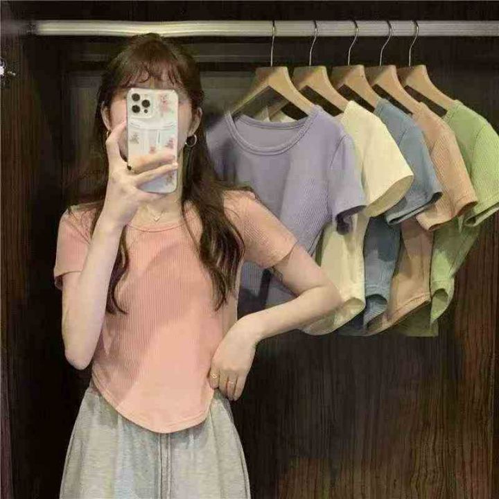 华夫格不规则正肩短袖t恤设计感小众修身短款上衣ins潮,独立包装,码数2-7,数量1227件,分货加1,货号121#42