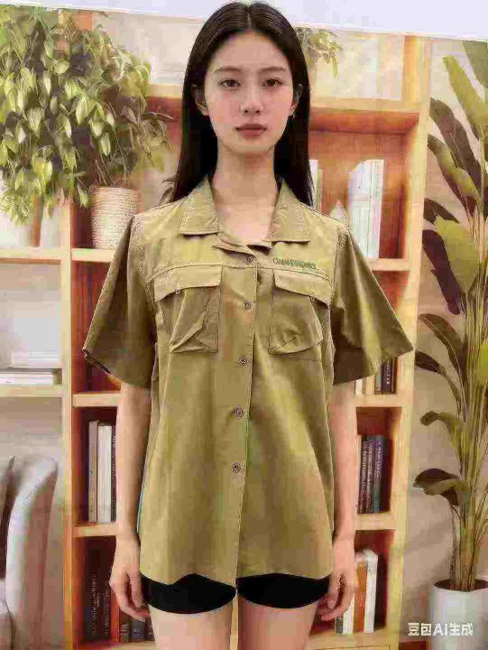 113件字母刺绣工装短袖衬衫,独立包装带吊牌,码数M-XL
