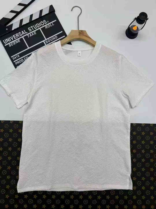 男士潮流短袖T恤,采用细微凹凸肌理的特殊面料,面料柔软有立体感,数量463件,码数M-4XL,单款3色,独立包装