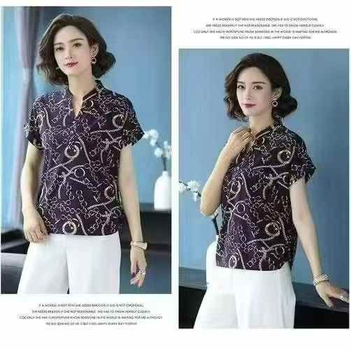 夏季新款时尚洋气中年妈妈气质印花雪纺衫,独立包装,码数L--3XL码,597件...