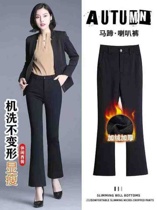 加绒西裤微喇叭裤子女冬高腰大码宽松休闲长裤,独立包...