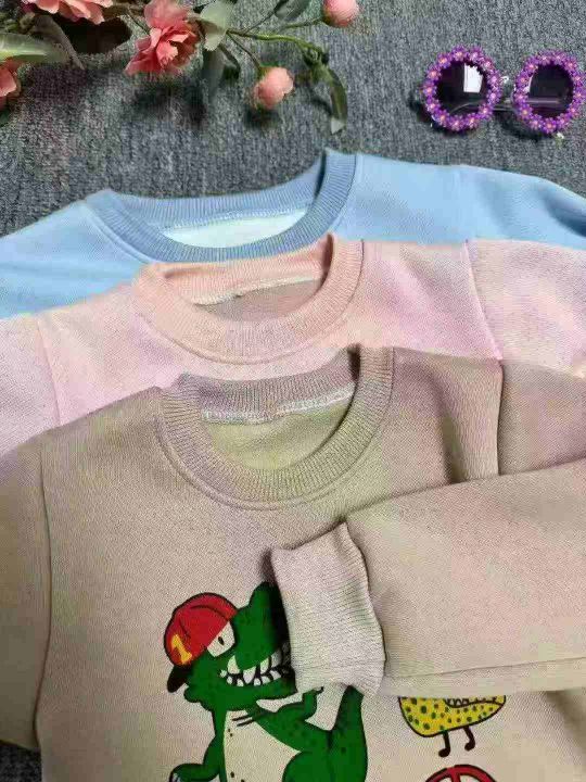 2000件左右秋冬男女童新款加绒保暖一体绒运动印花圆领卫衣。可穿3~8岁左右。一包4件。整款,面料厚实。亏本清。5.5秒杀