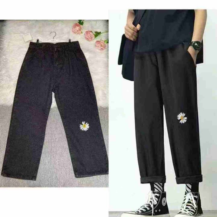 男女同款小雏菊刺绣牛仔裤子直筒阔腿萝卜宽松休闲高腰显瘦百搭牛仔裤1400件,图片系列款,独立包装带吊牌,尺码S~5XL,全清福利价9.8元,分货➕