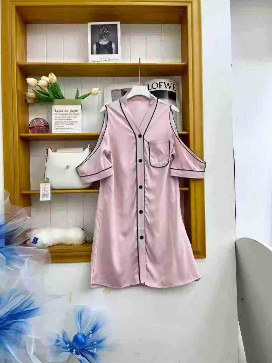 ① 网红冰丝性感露肩韩版宽松家居睡裙!独立包装,整款五色,有部分长袖款,码数M-2XL,数量300件左右,全清6.8元