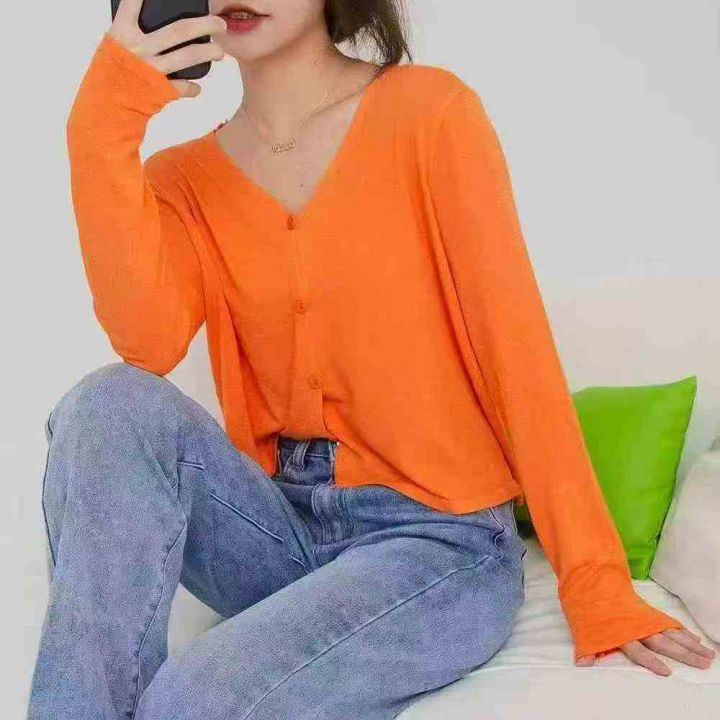 170多件品牌薄款女V领宽松显瘦百搭纯色针织开衫外套,...