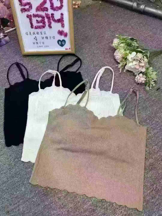夏季美背内衣女内搭带胸垫小吊带背心外穿打底无袖短款抹胸薄,黑色多,2个花型,有弹力,均码大概80穿到140斤,2600件左右,独立拉链原包装,货品干净,5.8清,分货加1
