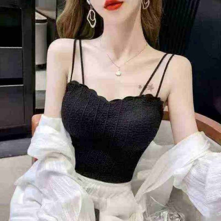 夏季美背内衣女内搭带胸垫小吊带背心外穿打底无袖短款...