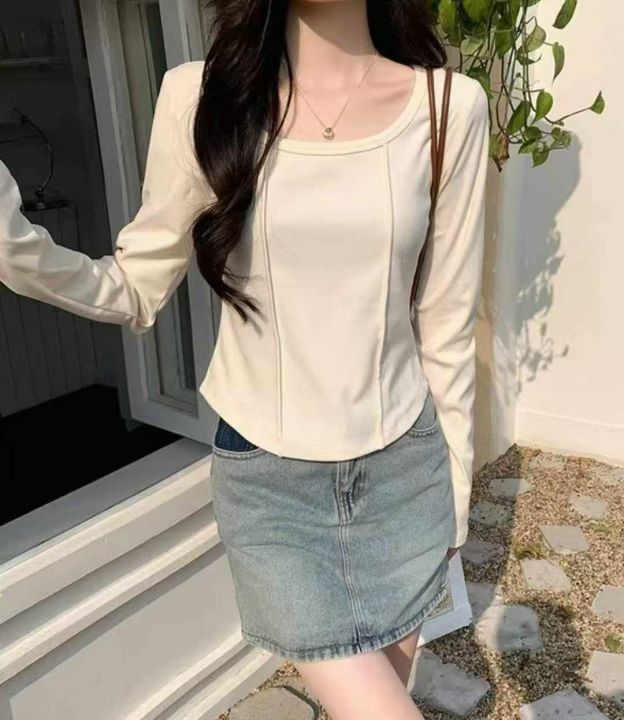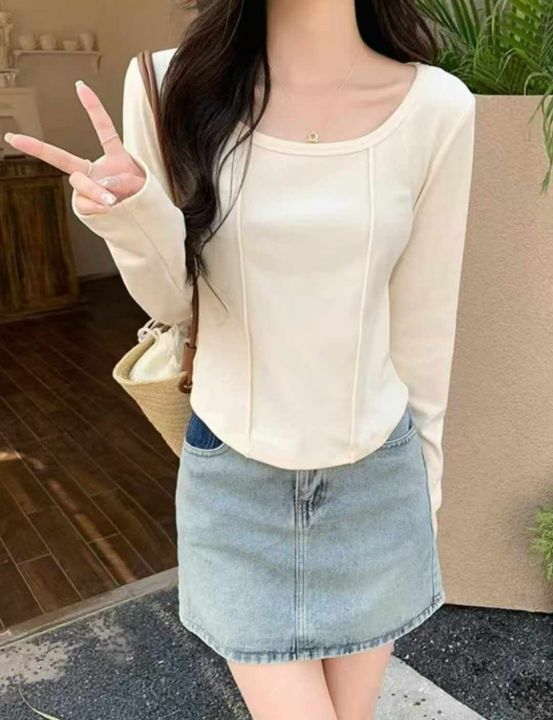 春秋新款网红双面德绒正肩收腰弹力修身显瘦鱼骨长袖上...