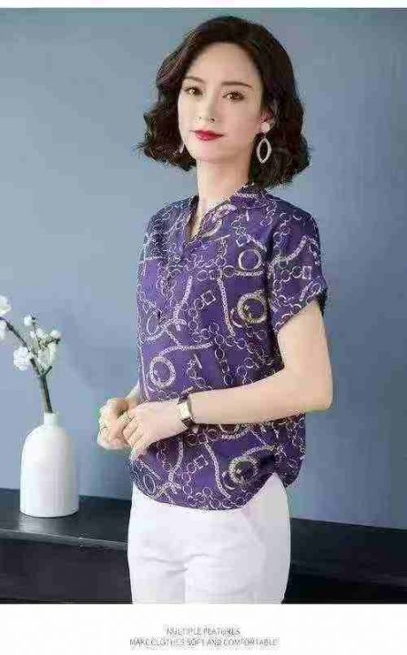 夏季新款时尚洋气中年妈妈气质印花雪纺衫,独立包装,...