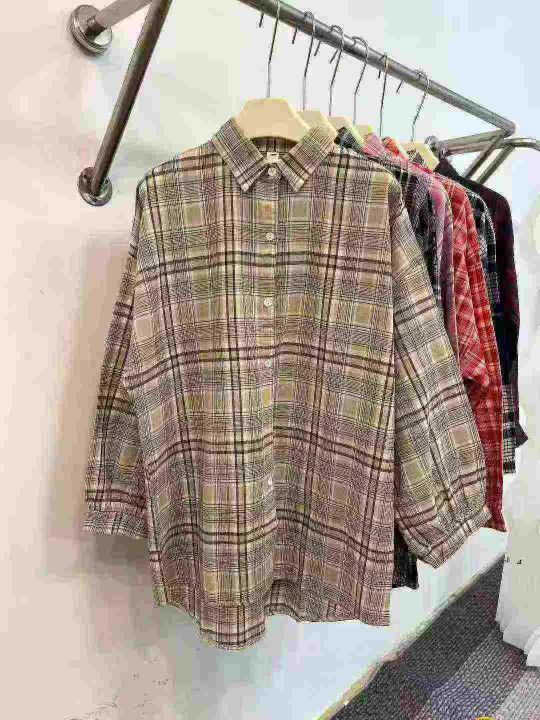 ☕️早春新款女装格子长袖衬衫969件全清9.8元,分货10.8元,码数S到3XL,两个整款5-6个色,图片款,独立包装,美式复古格子衬衫女春秋款高级感宽松慵懒风内搭叠穿上衣外套