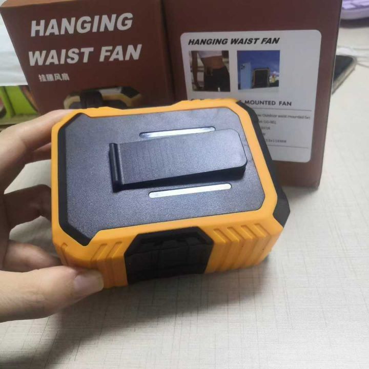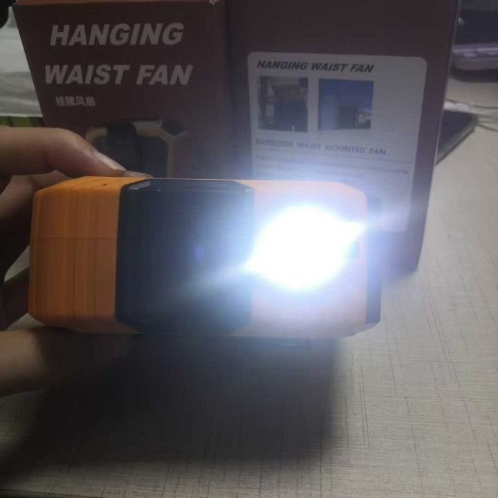 多功能挂腰风扇,三个档位LED照明功能,超长续航,户外首选,现货!。 货号:23491