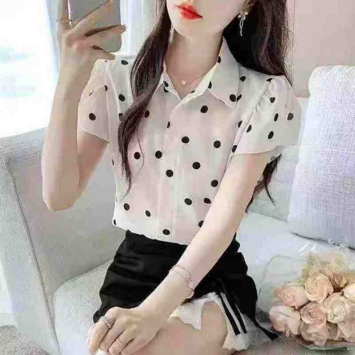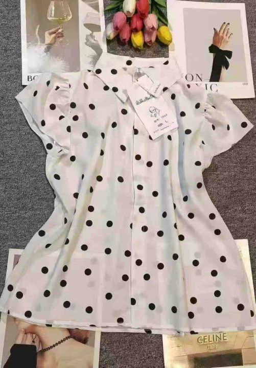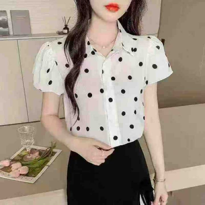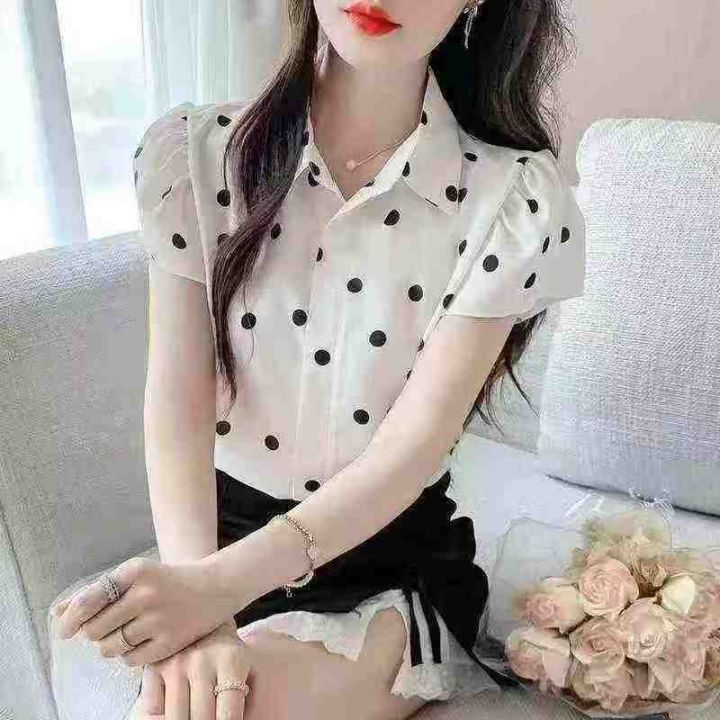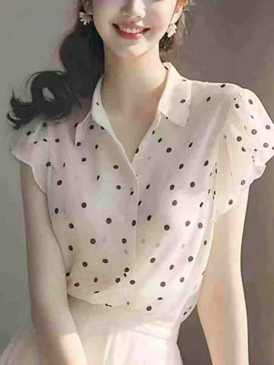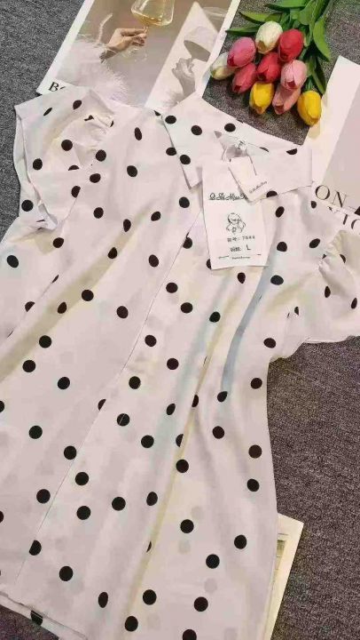 品牌高级感气质波点百搭小飞袖衬衣,[爱心]120件左右,码数S-2XL,穿80-140斤,万佳档口货,原包装️瑕疵,[666]分货